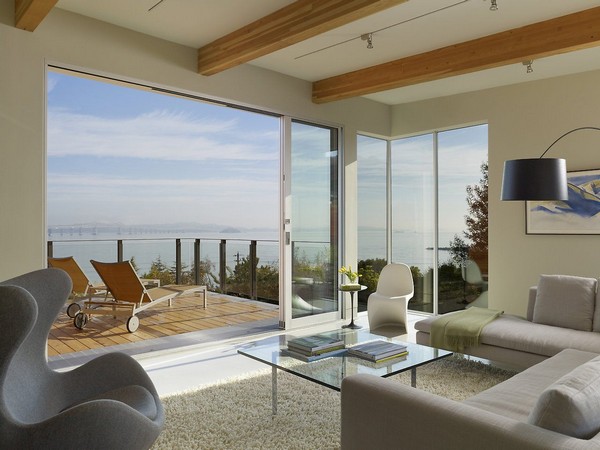 For those of you who want a dream home with an energetic and bright shades, here we will show a design house that designed a Tiburon Bay arisitek Armsden Butler. The house lies the coastal area, presenting a beautiful sea view and clearly visible from inside the room of the house. Expanse of sea is visible from the kitchen, lounge, porch, or bedroom. Why is called design-energy home? yep,,, because in every corner of the room of the house was touched by the rays of sunlight, making every corner of the room to be bright even without the use of lighting during the day. The use of electricity and hot water, using solar power here, so it can be called an eco-friendly home design. Although this house is a recycling process or the process of continuation of existing buildings, but between the interior and exterior design is very compact and harmonious without removing all pre-existing buildings such as the foundation of the house, and retaining walls. Part of the exterior design, there is a bridge that serves as a liaison between the garden and the house, besides as a problem solver steep place.